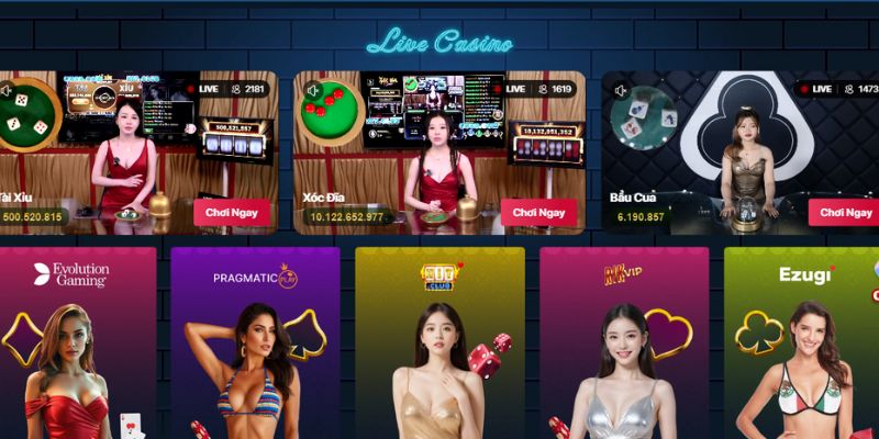 Chuyên mục đắt khách bậc nhất tại nhà cái sở hữu lượng hội viên đông đảo. Live Casino mở ra một sòng bài đẳng cấp cùng đội ngũ dealer người thật vô cùng lôi cuốn. Khi bước vào sảnh cược, bạn sẽ được hòa vào bầu không khí sôi động từ Las Vegas nhờ cách thiết kế rất chuyên nghiệp.